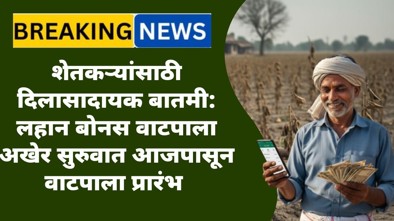 मिळालेल्या माहितीनुसार, आजपासूनच म्हणजेच सकाळी 11 वाजल्यापासून शेतकऱ्यांच्या खात्यावर लहान बोनसची रक्कम जमा होण्यास सुरुवात होणार आहे. काही शेतकऱ्यांच्या खात्यावर 11 वाजण्यापूर्वीही पैसे जमा होऊ शकतात. आज दिवसभरात, संध्याकाळी पाच वाजेपर्यंत तसेच रात्री उशिरापर्यंत ही प्रक्रिया सुरू राहण्याची शक्यता आहे. त्यामुळे शेतकऱ्यांनी वारंवार आपले बँक खाते तपासावे, असे आवाहन करण्यात येत आहे.