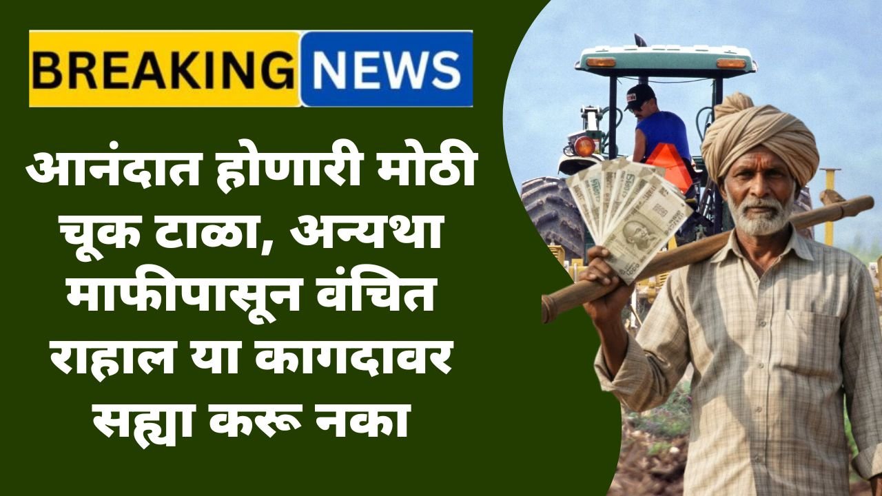 सध्या संपूर्ण महाराष्ट्रात शेतकरी कर्जमाफीची मोठी चर्चा सुरू आहे. राज्य सरकार शेतकऱ्यांच्या डोक्यावर असलेला कर्जाचा भार हलका करण्यासाठी लवकरच मोठी घोषणा करणार, अशी माहिती विविध माध्यमांतून समोर येत आहे. मागील काही वर्षांपासून निसर्गाच्या लहरीपणामुळे, बाजारभावातील चढ-उतारामुळे आणि वाढत्या उत्पादन खर्चामुळे शेतकरी आधीच अडचणीत सापडले आहेत. त्यामुळे कर्जमाफीची बातमी ऐकताच अनेक शेतकऱ्यांना मोठा दिलासा मिळाला आहे. मात्र याच आनंदाच्या भरात एक मोठी आणि गंभीर चूक होण्याची शक्यता आहे, जी भविष्यात शेतकऱ्यांना मोठ्या अडचणीत टाकू शकते.