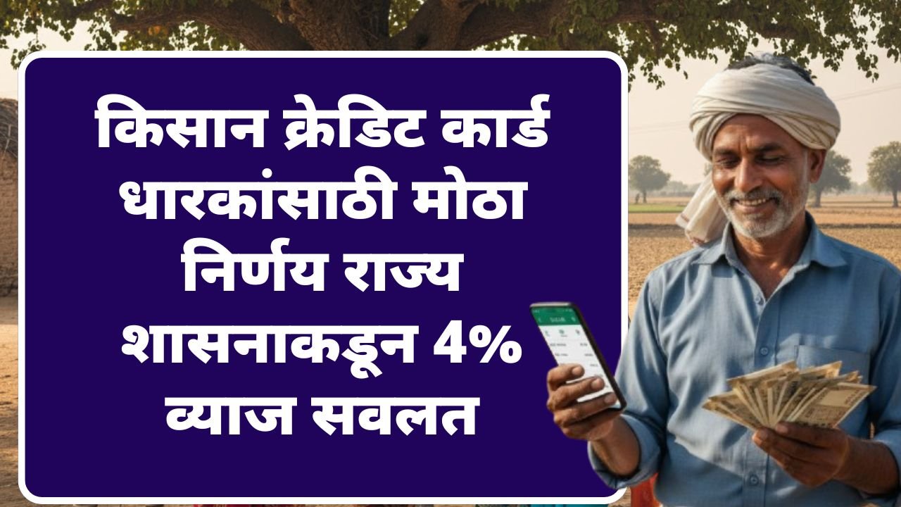 किसान क्रेडिट कार्ड धारकांसाठी मोठा निर्णय राज्य शासनाकडून 4% व्याज सवलत KCC