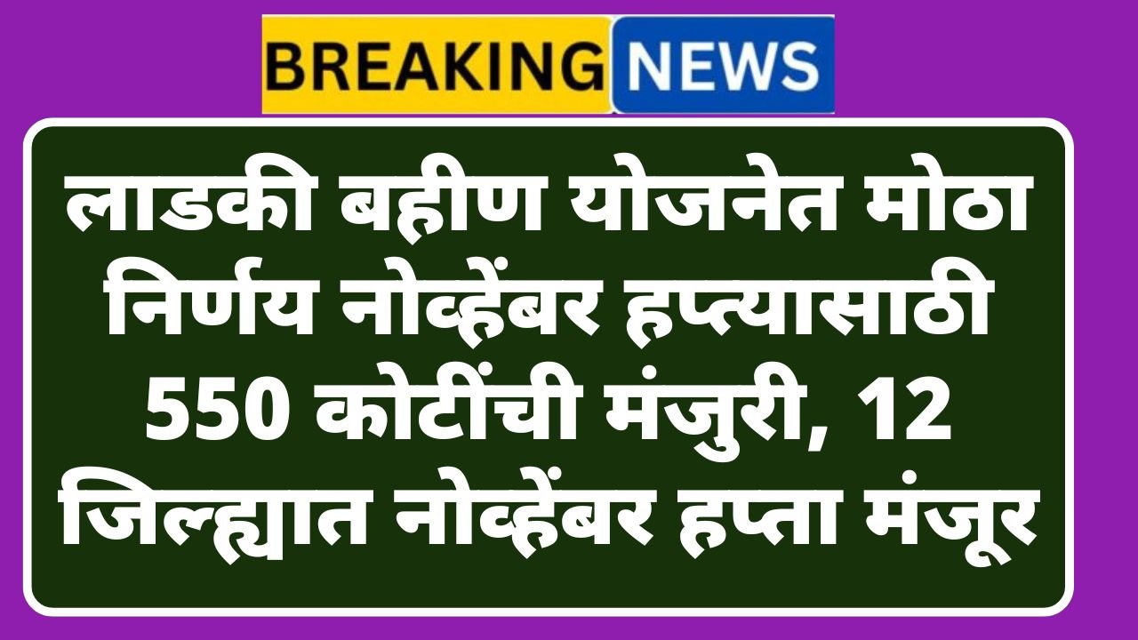 लाडकी बहीण योजनेत मोठा निर्णय नोव्हेंबर हप्त्यासाठी 550 कोटींची मंजुरी, 12 जिल्ह्यात नोव्हेंबर हप्ता मंजूर