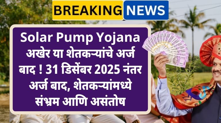 Solar Pump Yojana अखेर या शेतकऱ्यांचे अर्ज बाद! 31 डिसेंबर 2025 नंतर अर्ज बाद, शेतकऱ्यांमध्ये संभ्रम आणि असंतोष