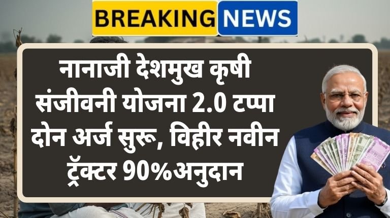 राज्य शासनाच्या महत्त्वाच्या नानाजी देशमुख कृषी संजीवनी योजना 2.0 (टप्पा दोन) याबाबत सविस्तर माहिती पाहणार आहोत. या योजनेअंतर्गत कोणकोणत्या कामांसाठी अर्ज सुरू झाले आहेत, नवीन विहीर, विहीर दुरुस्ती, शेततळे, पीव्हीसी पाईप, स्प्रिंकलर, बांबू लागवड यांसारख्या योजनांचा यात कसा समावेश आहे, अर्ज प्रक्रिया कशी आहे, कोण पात्र आहे, कोणती कागदपत्रे लागतात आणि शेतकऱ्यांना अनुदान किती मिळू शकते, याची सविस्तर आणि सोप्या शब्दात माहिती या लेखात देण्यात येणार आहे.