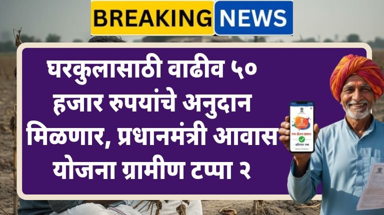 प्रधानमंत्री आवास योजना ग्रामीण (PMAY-G) टप्पा २ अंतर्गत राज्य शासनाकडून देण्यात येणाऱ्या वाढीव ५०,००० रुपयांच्या अनुदानाबाबत सविस्तर माहिती पाहणार आहोत. हे अनुदान नेमके कधी मिळणार, पूर्ण ५० हजार रुपये मिळणार की टप्प्यांमध्ये मिळणार, यामध्ये सोलर योजनेचा काय संबंध आहे, २०२४–२५ या आर्थिक वर्षात कोणते लाभार्थी पात्र आहेत, तसेच अनुसूचित जाती, अनुसूचित जमाती आणि इतर प्रवर्गातील लाभार्थ्यांना किती फायदा होणार आहे, हे सर्व मुद्दे आपण सविस्तर आणि सोप्या मराठी भाषेत समजून घेणार आहोत.