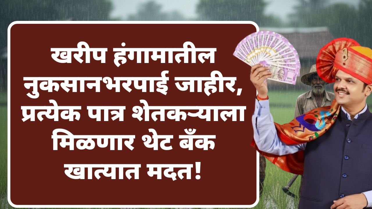 खरीप हंगामातील नुकसानभरपाई जाहीर, प्रत्येक पात्र शेतकऱ्याला मिळणार थेट बँक खात्यात मदत!